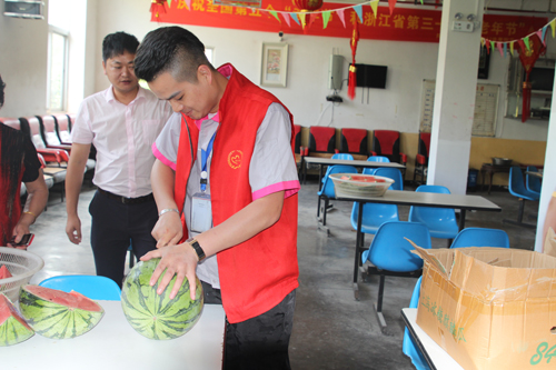 慰問中,黨支部成員們將好心人捐贈給黃巖慈善義工隊(duì)的西瓜切好,熱情地送到老人們的手中,并詳細(xì)詢問了老人們的生活、身體狀況等,叮囑老人保重身體,送上端午祝福。老人們臉上洋溢著幸福的笑容,對大家的善舉深表感謝。