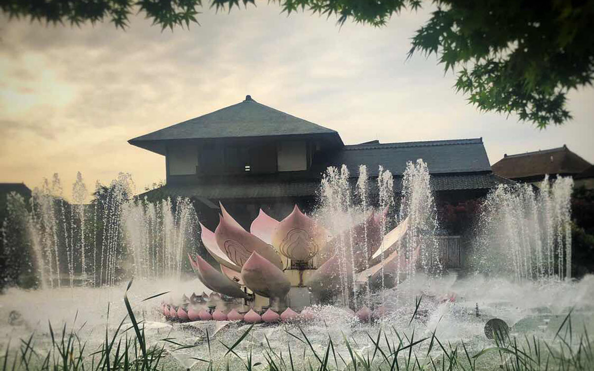 靈山小鎮·拈花灣,座落在無錫馬山國家風景名勝區的山水之間,這里向來有凈空、凈土、凈水之稱,生態秀美,環境優越。而拈花灣靠山面湖,更與靈山大佛依山為鄰,可以說是得盡天地人文靈氣。拈花灣的命名,一方面源于靈山會上佛祖拈花而迦葉微笑的經典故事,同時也緣于它所在的地塊形似五葉蓮花的神奇山水。